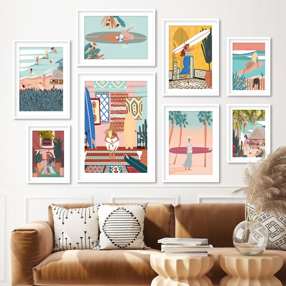Descubre nuestra exclusiva colección de ilustraciones dedicadas a las mujeres amantes del surf. Cada obra de arte ha sido cuidadosamente diseñada para capturar la esencia de la mujer surfista y transmitir un mensaje poderoso de individualidad, calma y seguridad.